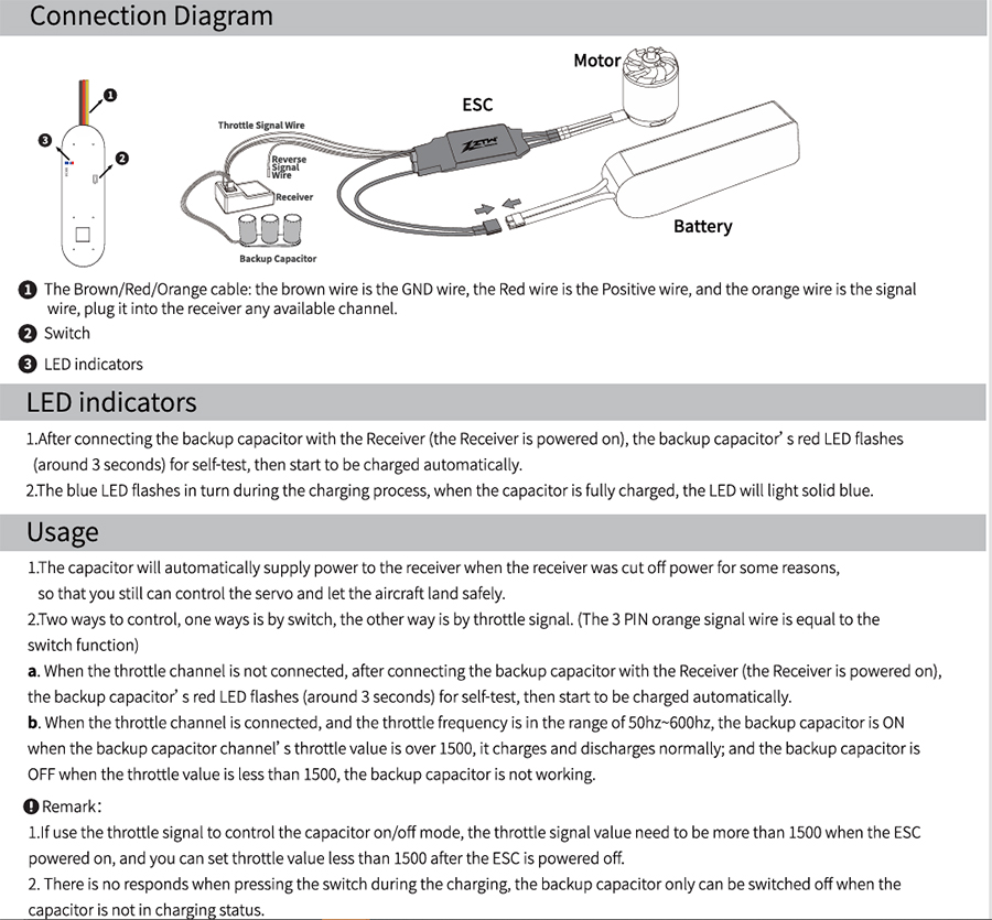 Power Capacitor Buffer BEC Backup 60F 6V/8.4V 25A For RC Airplanes