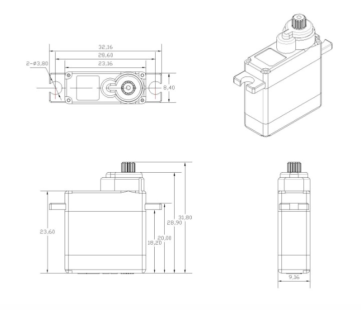 Corona DS843MG Digital Metal Gear Servo(4.8Kg/ 8.5g/ 0.10sec)