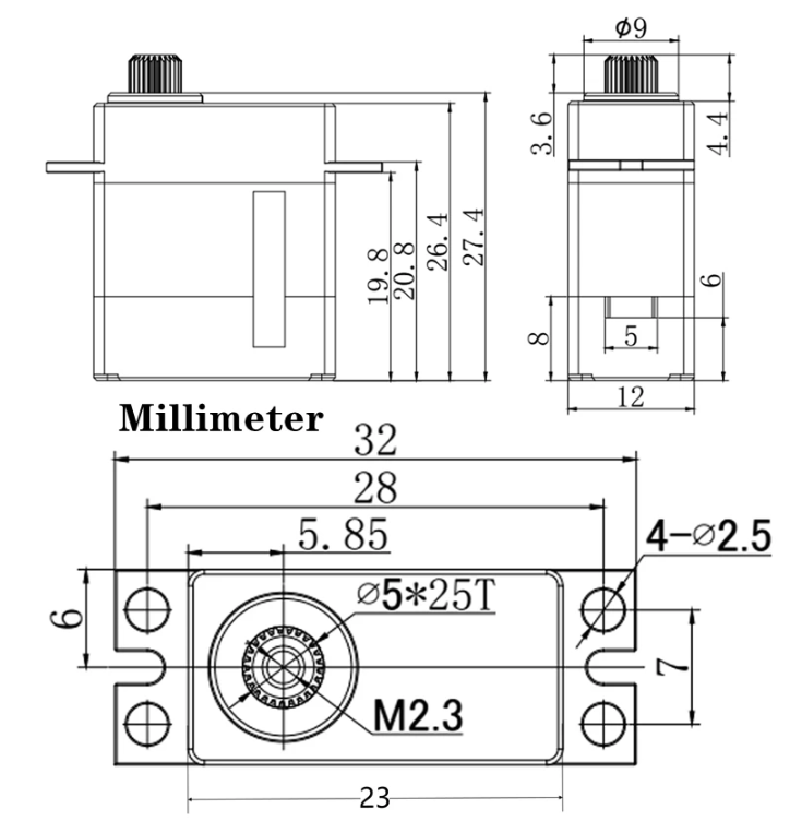 DS 296X Metal Case Digital Mini Servo[10kg/8.4V/20g]